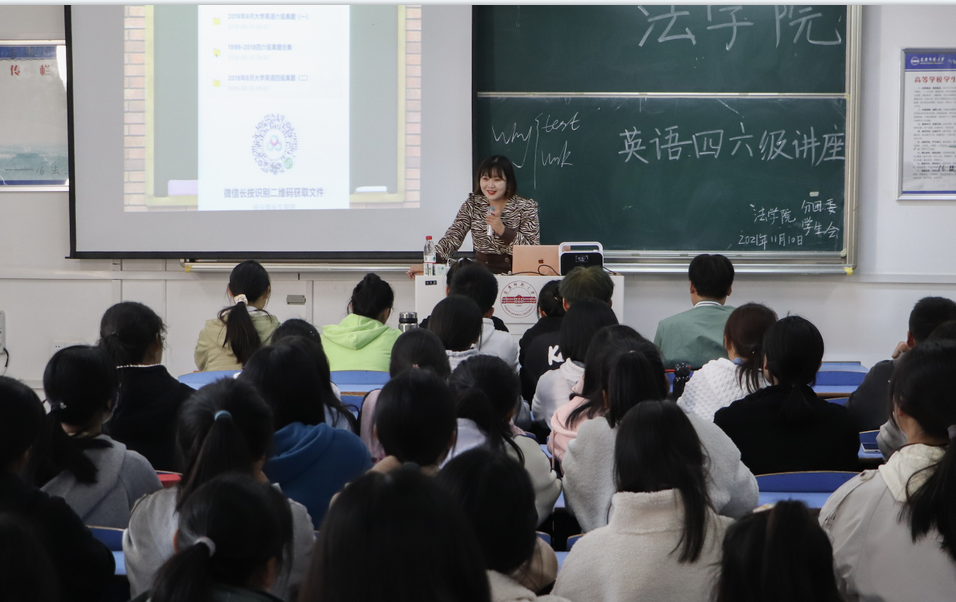 11月10日,太阳成集团tyc122cc在文津楼401、403教室同时举行英语四六级讲座,邀请四六级模拟听力板块的录制者金牌英语讲师姬丽君和王斌,面向公司新生开展四六级英语讲座,共两百余人到场聆听。
