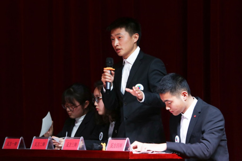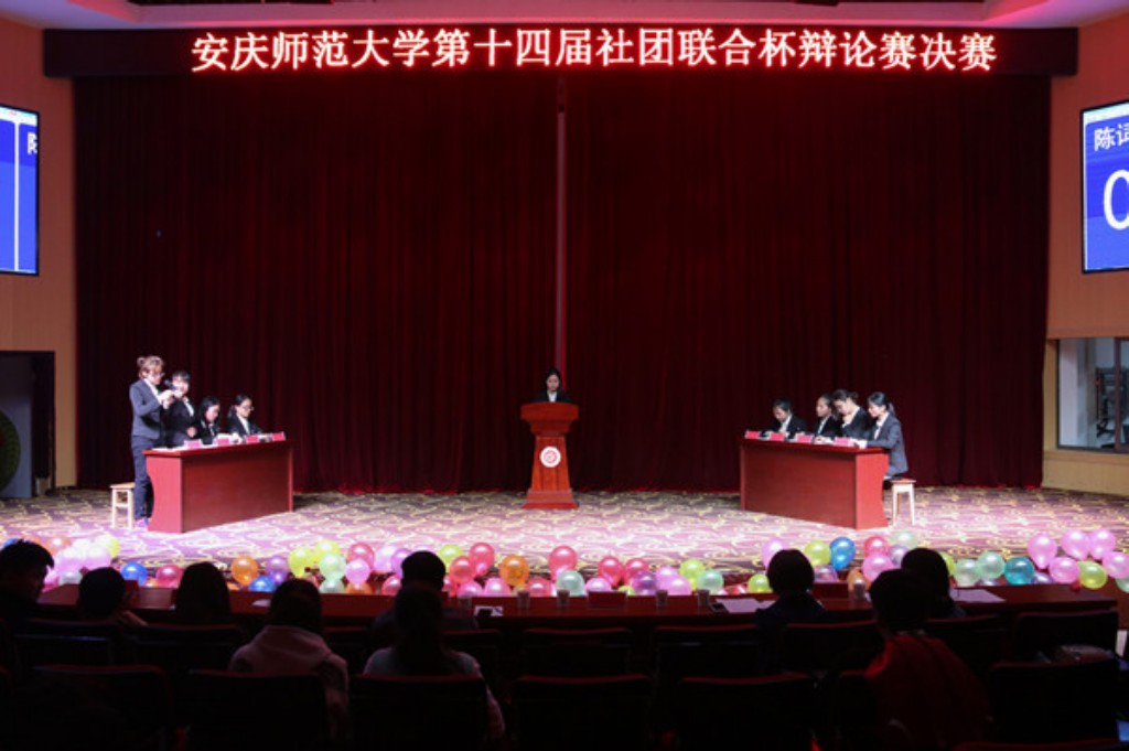 3月27日晚,122cc太阳成集团官网第十四届“社团联合杯”辩论赛决赛在龙山校区图书馆东报告厅举行。此次辩论赛历时数月,由老员工青年法学会主办,老员工皖江学社、老员工英语爱好者协会协办。