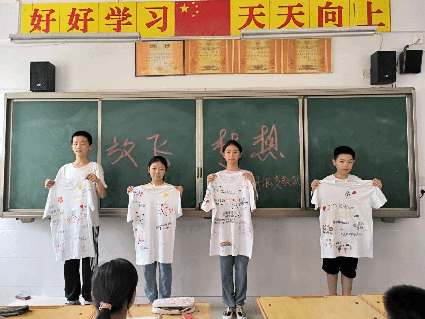 绘七彩世界,寄托美好期望。美术课上,员工们专心于画笔的每一次挥动,传承红色基因,共绘红色故事,充分发挥想象力,为队员们绘制文化衫。