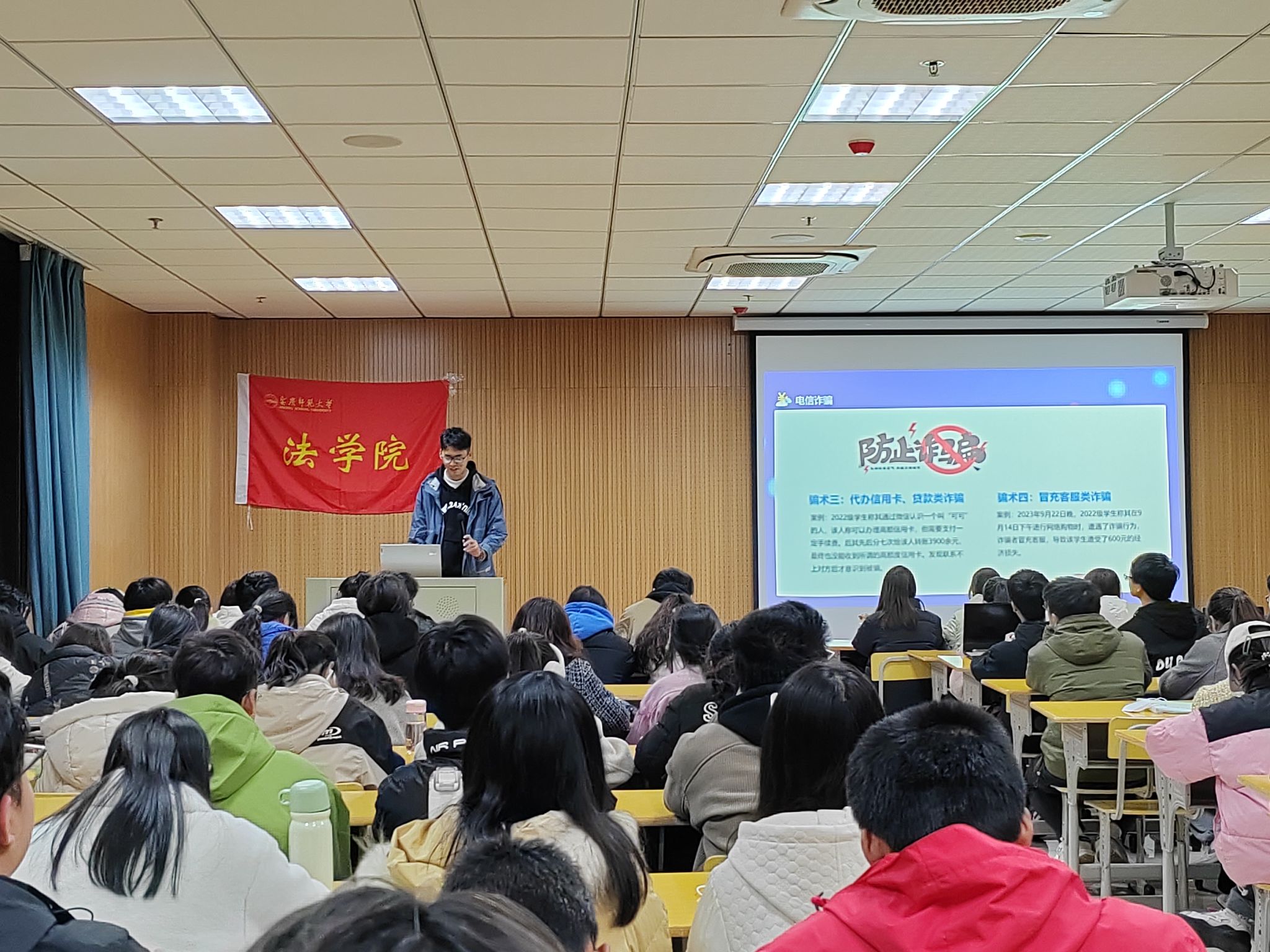 太阳成集团tyc122cc员工会外联部部长陈磊担任主讲人。他分别从电信诈骗、贷款诈骗、网络诈骗、情感诈骗四个方面展开宣讲。他结合近年来频发的各类诈骗案件,剖析了犯罪分子的作案手法,引导同学们辨识骗局、熟悉套路。期间,他重点强调了刷单兼职、网络交友等老员工群体容易“中招”的诈骗形式,同时针对性地为同学们介绍了防范诈骗的有效方法以及“六个一律”“八个凡是”等防诈骗口诀。