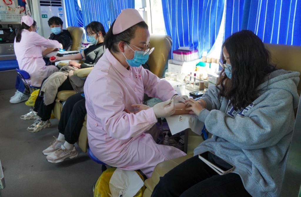 “同学们参与献血的积极性都很高,虽然血车来的有点晚,但是大家都能耐心的排队等待。”安庆市红十字中心血站血源科王弦说:“无偿献血是促进人与人之间关系的纽带,这些血液可以救助更多的人,是人们崇高精神的体现。”