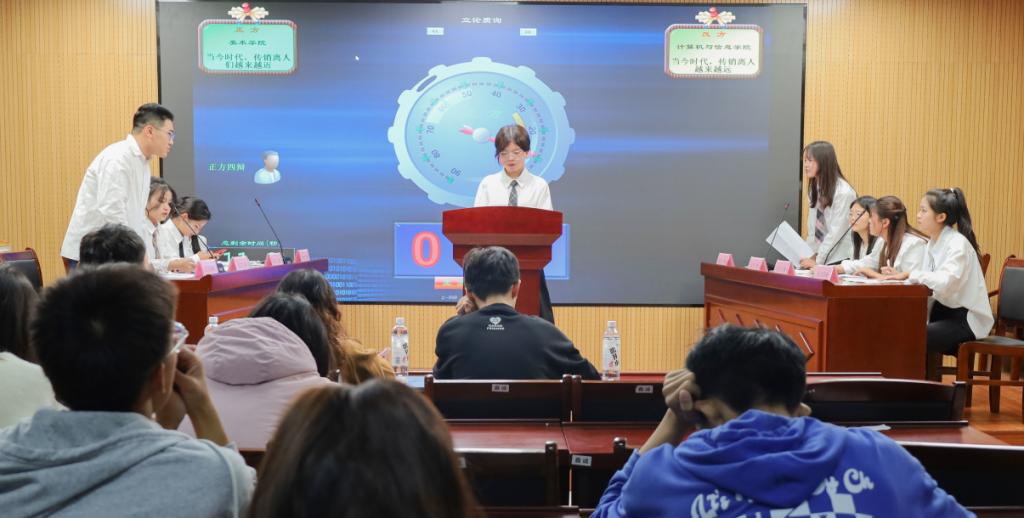 “您方是否理解传销的定义?”“您方的身边从来没有出现过传销吗?”……围绕“当今时代,传销离人们越来越近/越来越远”的辩题,美术公司代表队、计算机与信息公司代表队分为正反双方展开了激烈的辩论。通过立论、攻辩、质询等环节,辩论队员们举事实、述真理,唇枪舌剑、针锋相对。