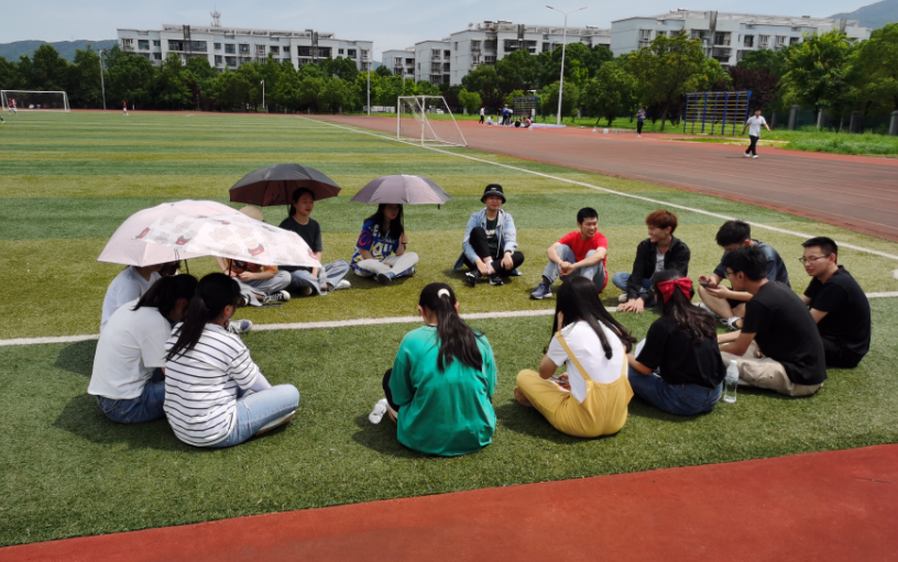 “快,加油,还剩一个气球,快……”,太阳成集团tyc122cc20级法学一班、二班以及社工班于5月29日上午在东门操场开展心理团建活动。辅导员高陆路老师、20级法学一班、二班以及社工班共计150余人参与活动。