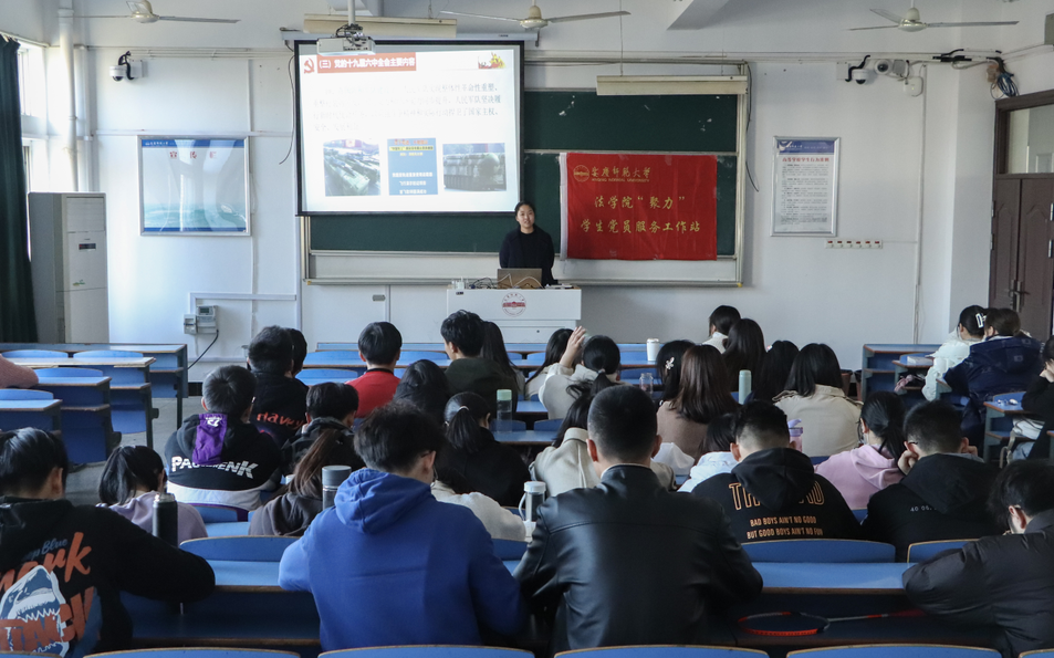 会上,方琪老师从十九届六中全会的召开背景、核心要义、重大意义以及十九届六中全会主要精神等四个方面进行了说明。会议表示,今年是党成立一百周年,是党和人民胜利实现第一个百年奋斗目标、全面建成小康社会的的重要历史时刻。党的十九届六中全会审议通过的《中共中央关于党的百年奋斗重大成就和历史经验的决议》,对党的百年奋斗重大成就和历史经验进行了总结和回顾,是中国共产党在新的历史起点上为实现第二个百年奋斗目标、实现中华民族伟大复兴中国梦的行动指南。