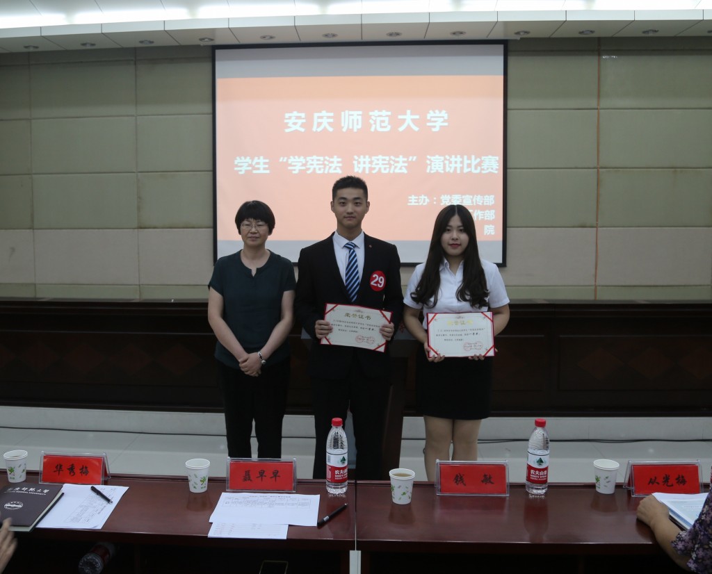 在演讲过程中,来自教师教育公司的九号选手秦晶晶将宪法与公司校训“敬敷、示范、勤学、笃行”有机结合,“正是宪法保障了我们的受教育权,我们才可以在122cc太阳成集团官网学习”;二十五号选手吴建以自身引入,讲述宪法多年来给予他的帮助;十四号选手吴敏以聚宪法之力,筑中国之梦为主题,从聚个人之力、聚社会之力拓展到聚宪法之力,由小及大,层层递进……