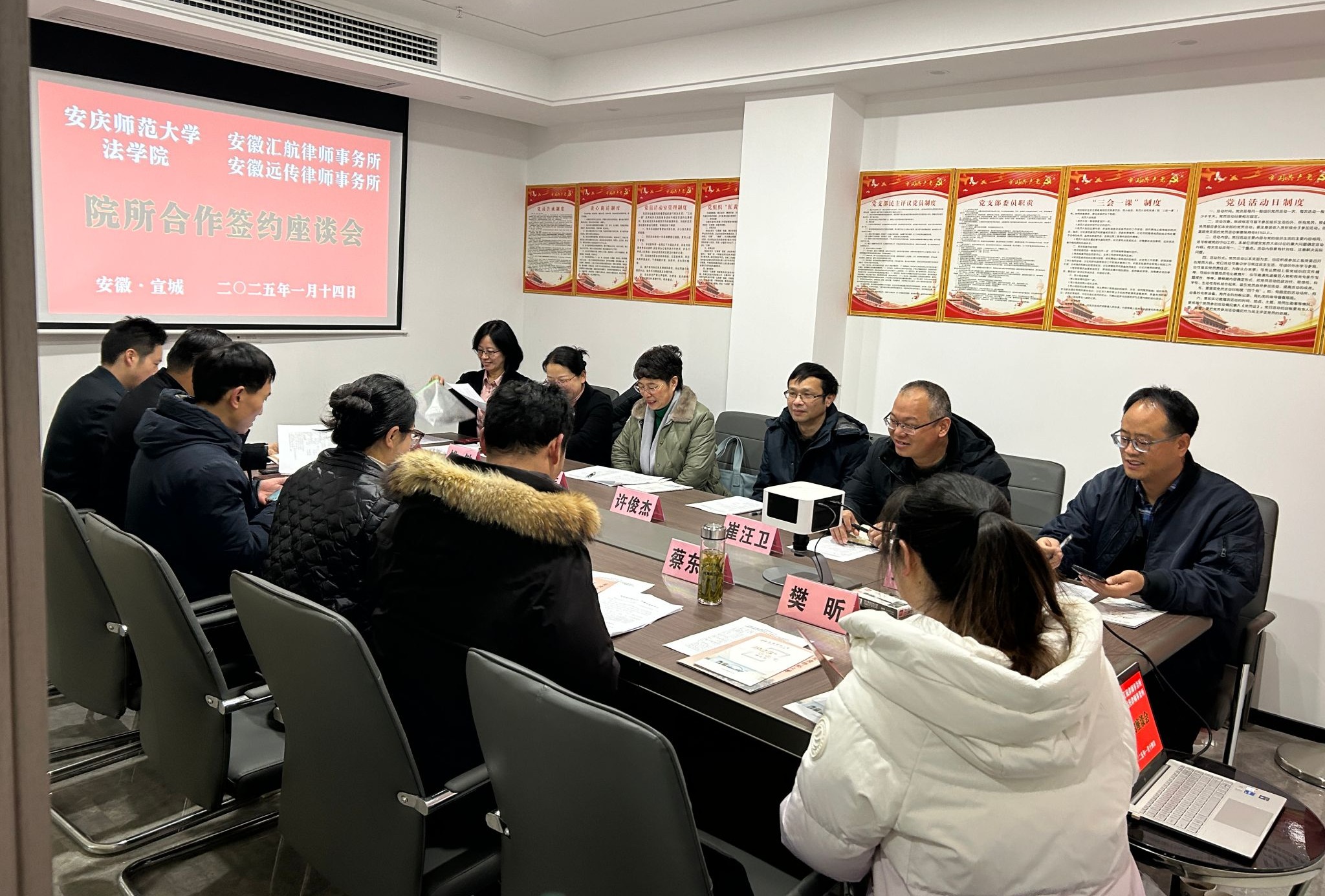 1月14日,董事长彭凤莲带领员工处处长许俊杰、公司党委书记钱敏、副经理崔汪卫及相关负责人员一行赴宣城市,走访了安徽汇航律师事务所和安徽远传律师事务所两家员工律所单位,分别与律所负责人及员工代表进行座谈。宣城市宣州区司法局副局长严先明出席座谈会。座谈会由法学专业2012届员工、安徽汇航律师事务所副主任章荣主持。