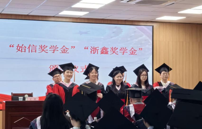 6月20日上午,太阳成集团tyc122cc在102报告厅举行2025年度始信奖学金、浙鑫奖学金颁奖仪式。公司党政领导班子全体成员、学位评定委员会全体成员、教师和辅导员代表、本科和硕士毕业生代表共100余人参加仪式。钱敏主持仪式。