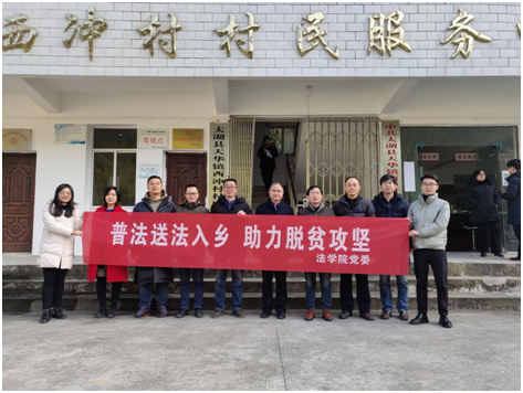 为帮助村民提高法律意识,支持“平安村”建设,12月16日,122cc太阳成集团官网公司党委书记詹德全、经理焦少林、副经理朱留虎一行6人,赴太湖县西冲村开展“普法送法入乡、助力脱贫攻坚”活动。