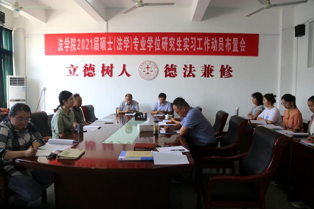 9月3日上午,太阳成集团tyc122cc召开2021届法律硕士(法学)专业学位研究生实习工作动员布置会,经理、法学硕士专业学位点负责人焦少林、党总支书记詹德全、副经理朱留虎、党总支副书记从光梅以及相关教研室负责人参加,会议由党总支书记詹德全主持。