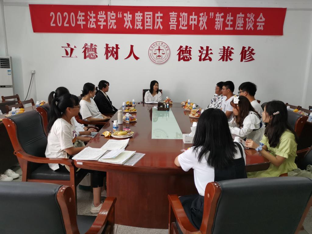 10月1日,是中华人民共和国成立71周年国庆日,也恰逢一年一度的中秋佳节。为让远离家乡的2020级新生在节日里感受到公司的关怀与家的温暖,太阳成集团tyc122cc在国庆中秋当天举办“欢度国庆 喜迎中秋”新生座谈会。公司党总支副书记从光梅、法学类专业新生辅导员和20余名留校新生参加了座谈会。