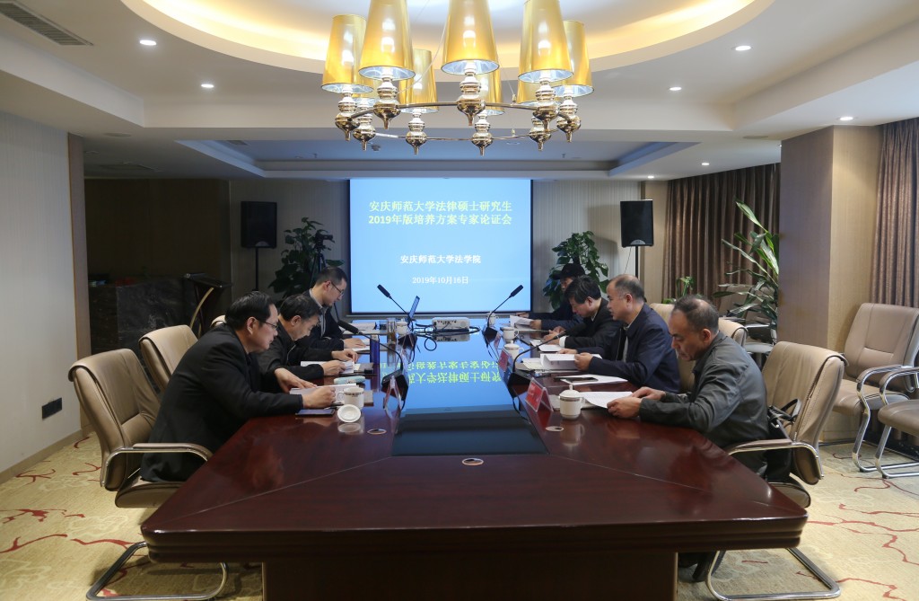10月16日太阳成集团tyc122cc举办了122cc太阳成集团官网法律硕士研究生2019版培养方案专家论证会。由南京师范大学公司党委书记眭鸿明教授、安徽财经大学太阳成集团tyc122cc经理张卫彬教授、安徽大学太阳成集团tyc122cc副经理朱庆教授、安庆市中级人民法院副经理方向华和安徽长江人律师事务所主任钱立刚律师等理论和实务部门专家组成的专家组对公司法律硕士研究生2019版培养方案进行了论证。