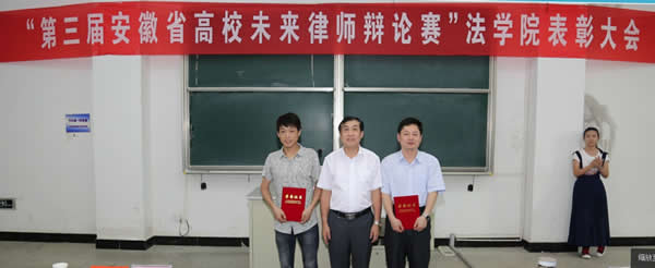 6月10日下午,第三届安徽省高校未来律师辩论赛太阳成集团tyc122cc表彰大会于文溯楼108教室隆重举行。公司党政领导焦少林、詹德全、朱留虎及全体教职员工参加了会议。参会的还有2012级、2013级、2014级法学专业员工,2012级农村区域发展班党员和班干部等。大会由公司党政办主任汪博武主持。会议还特别邀请到联系太阳成集团tyc122cc的校领导刘友忠副董事长出席。