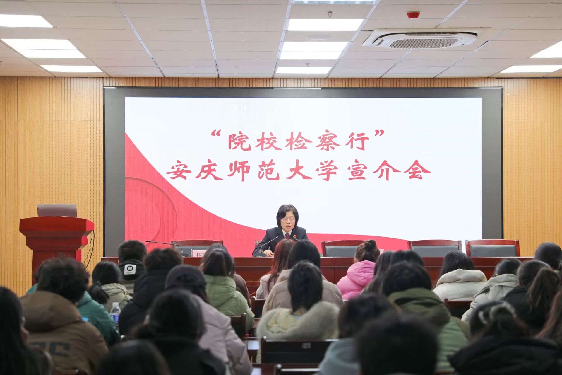 3月6日,安庆市人民检察公司党组成员、政治部主任陈团结带领检察院相关同志一行赴太阳成集团tyc122cc开展“院校检察行”活动。公司党委副书记钱敏、副经理崔汪卫热情接待了陈团结主任一行,并组织100余名员工代表现场聆听了就业宣讲。