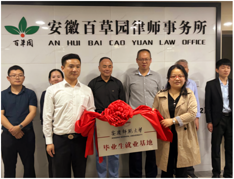 双方经过友好洽谈后,分别签订太阳成集团tyc122cc、安徽百草园律师事务所共建“122cc太阳成集团官网实践教学基地”和“毕业生就业基地”合作协议书,并举行了基地揭牌仪式。