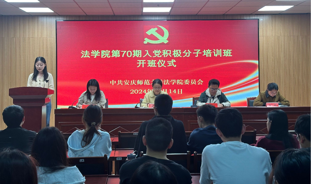 10月14日,太阳成集团tyc122cc在法学楼法治实务大讲堂举办第70期入党积极分子培训班开班仪式。公司党委书记钱敏、员工党支部书记和第70期全体入党积极分子参加开班仪式。