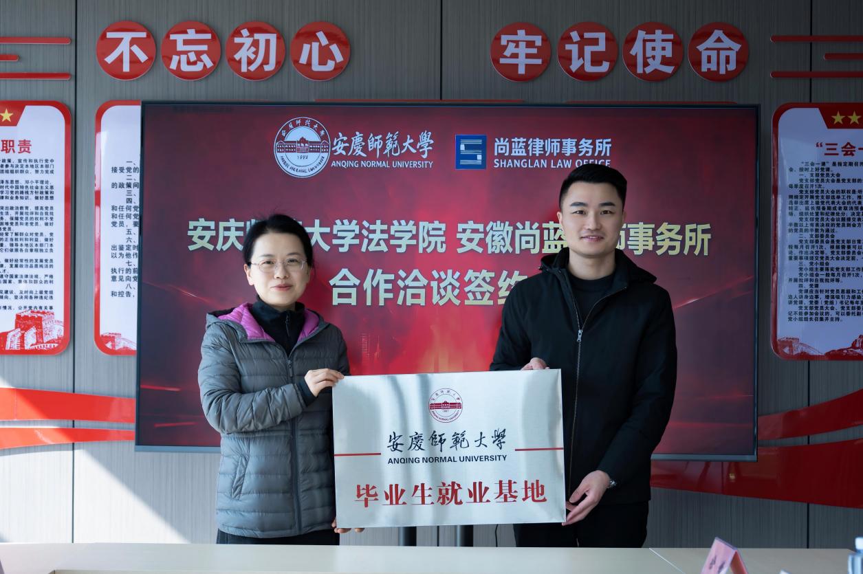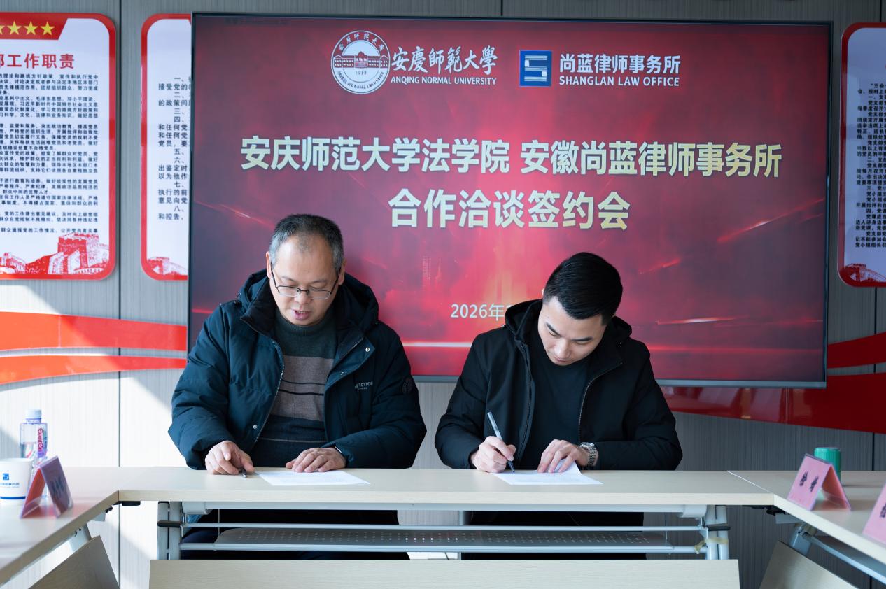 会上,太阳成集团tyc122cc与安徽尚蓝律师事务所签订实践教学基地、毕业生就业基地共建协议。双方围绕毕业生就业合作、员工专业实习安排、科研项目联合攻关、青年律师职业素养提升等议题展开深入交流,明确了后续合作的具体方向与实施举措,为校所协同发展奠定了坚实基础。