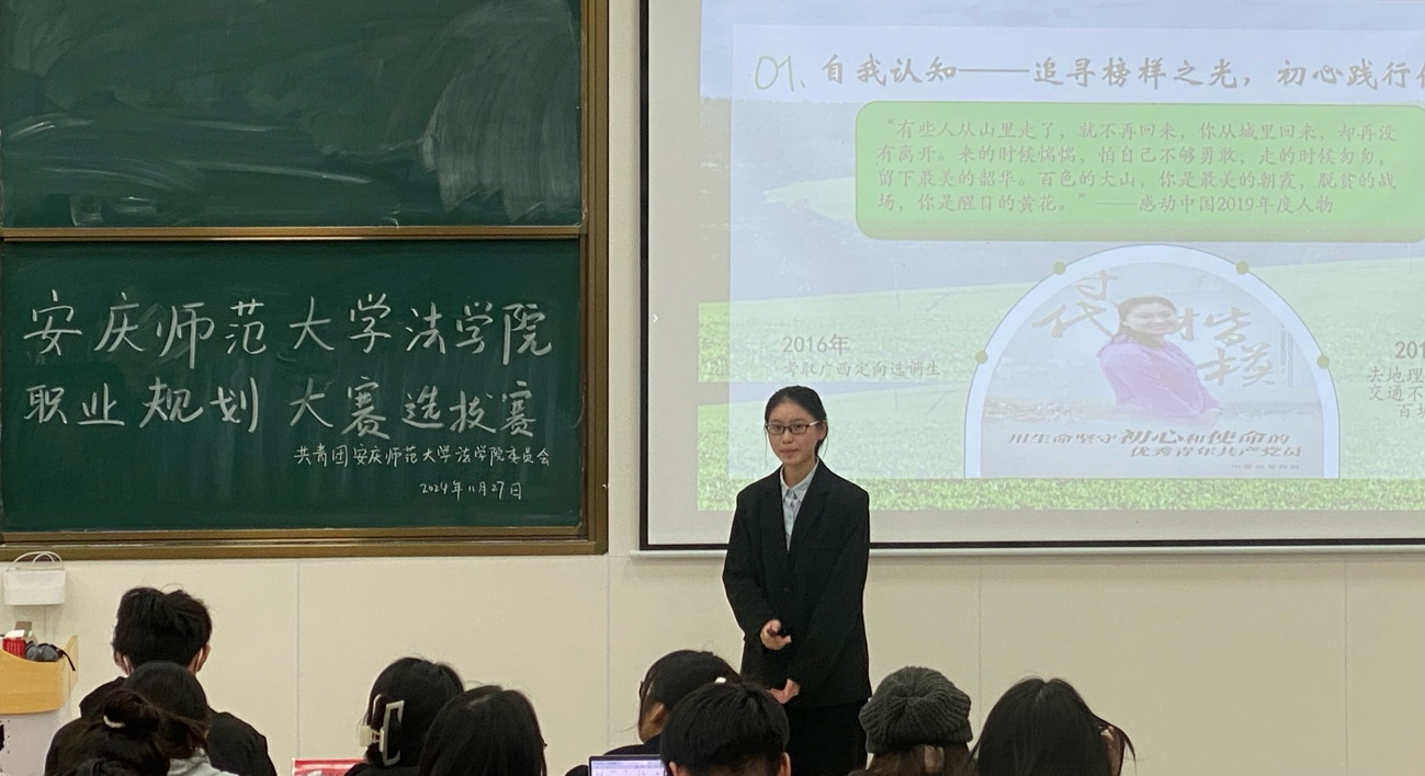 大赛伊始,选手们依次上台,从自我评估、计划与实施、职业环境分析以及评估与调整等方面阐述理想目标职业。他们或以成为一名公正不阿的检察官为目标追求,或以成为恪尽职守的法官为职业理想,或准备投身基层,面向广大群众积极宣传法律知识,为中国法律事业贡献自己的一份力量。他们讲述的不仅仅是对未来职业的规划,更是对美好未来的憧憬和服务社会的决心。通过选手们热情洋溢的讲述,台下观众深深感受到了太阳成集团tyc122cc员工对法律的热爱以及成为新时代优秀法律人的决心。