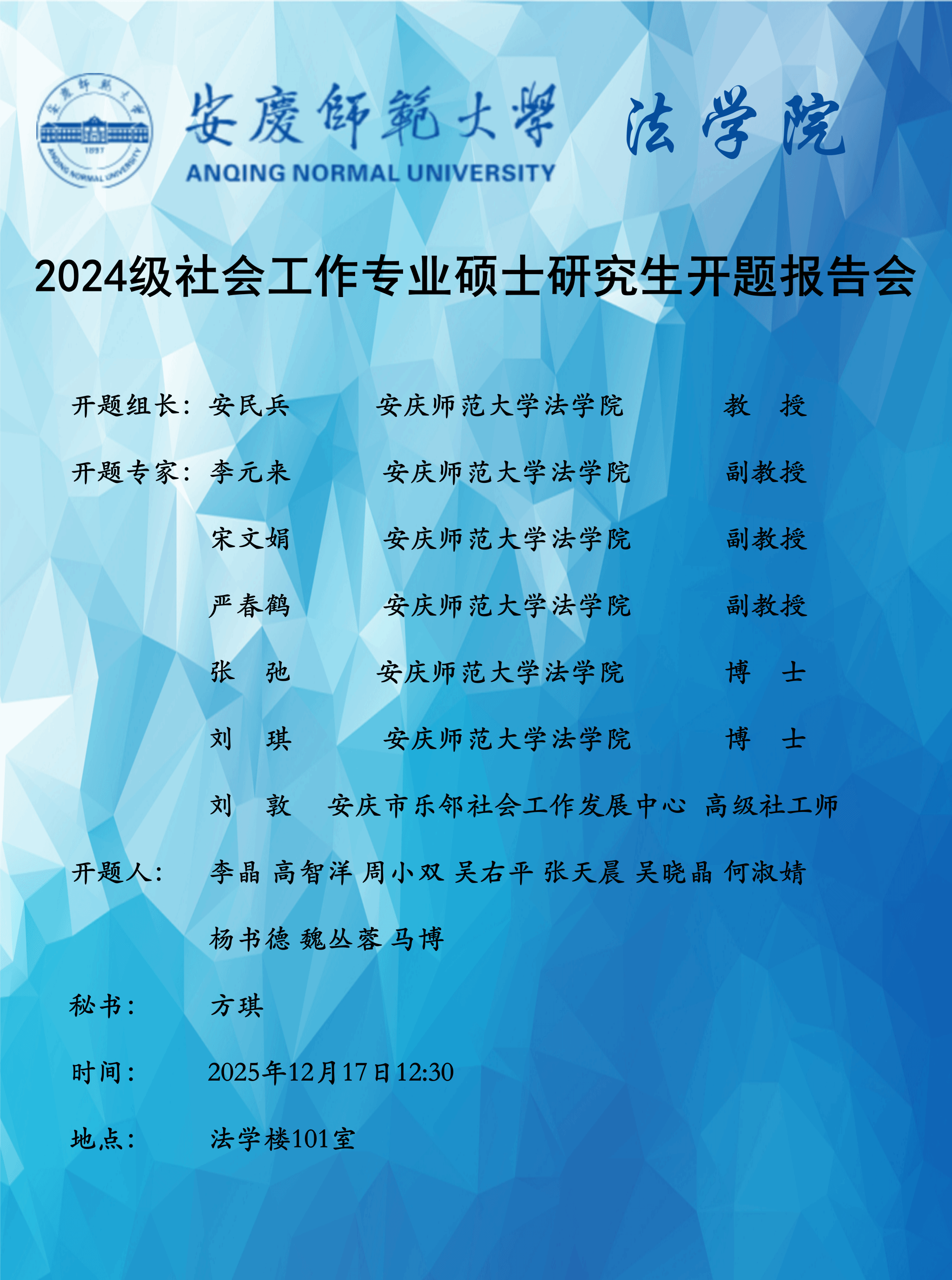 太阳成集团tyc122cc2024级法律硕士、社会工作专业硕士研究生开题答辩通知