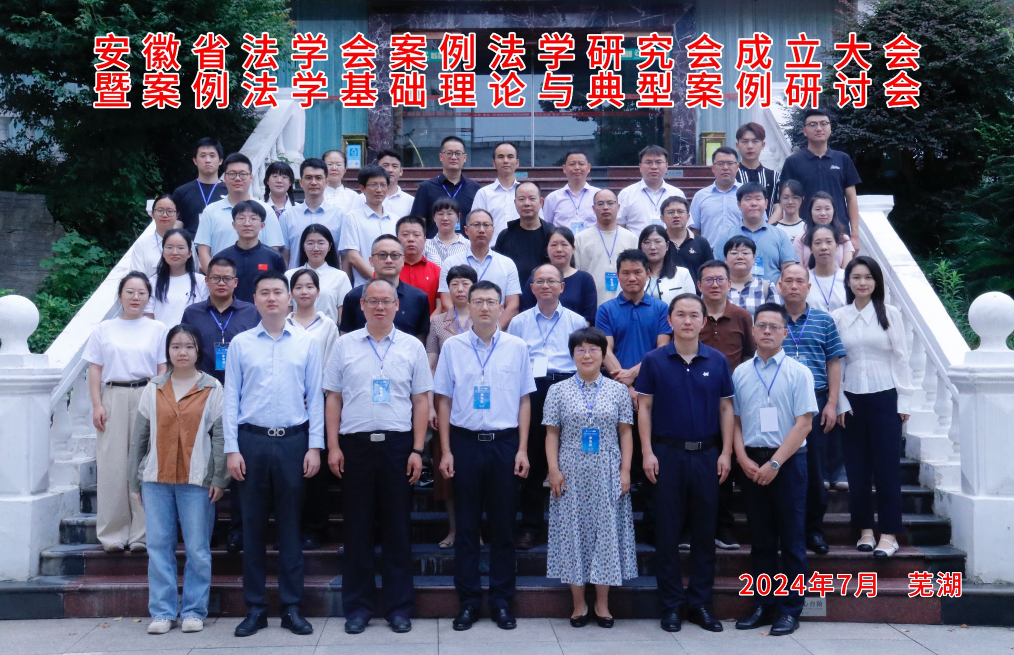 2024年7月27日,由安徽省法学会主办,安徽师范大学太阳成集团tyc122cc承办的安徽省法学会案例法学研究会成立大会在芜湖铁山宾馆举行。大会由安徽省法学会常务理事周振杰教授主持,安徽师范大学党委常委、副董事长高峰致辞。太阳成集团tyc122cc副经理崔汪卫、太阳成集团tyc122cc史文平博士应邀参加成立大会。会议选举公司副经理崔汪卫教授为副会长,史文平博士为理事。