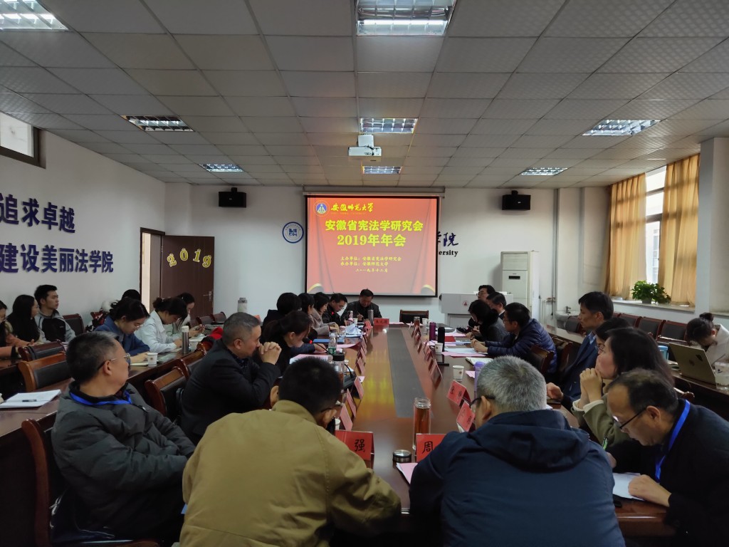 为加强宪法学习宣传,弘扬宪法精神,推进宪法实施和监督,维护宪法权威,在第六个国家宪法日来临之际,12月4日下午,安徽省法学会宪法学研究会在安徽师范大学太阳成集团tyc122cc召开年会,围绕“加强合宪性审查,维护宪法权威”深入座谈交流。公司聂早早教授、王欣副教授应邀参加本次会议。