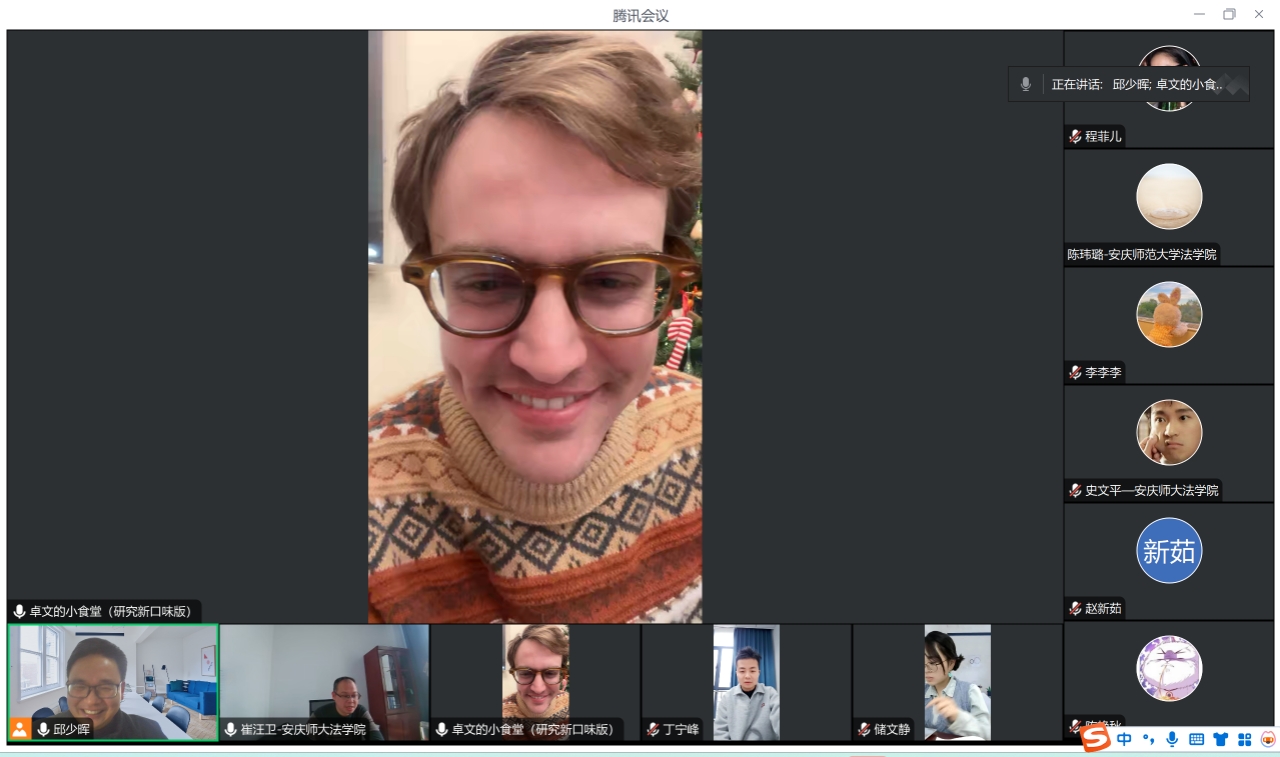 2024年12月26日,公司召开“徽文化赋能基层社会治理现代化研讨会”,会议以线上方式进行。首届外国人讲安徽故事大赛冠军Adrien Paul Duisberg Brill及太阳成集团tyc122cc部分师生参加会议。