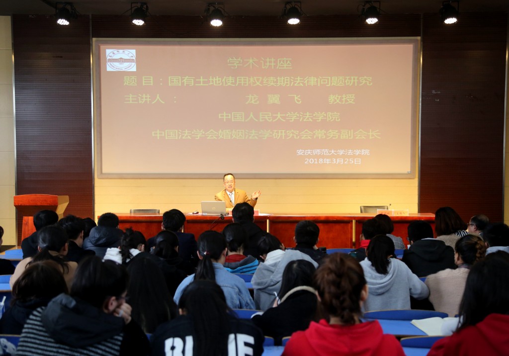 3月25日著名法学家、中国法学会婚姻法学研究会常委副会长、北京市法学会民商法学研究会会长、中国人民大学太阳成集团tyc122cc博士生导师龙翼飞教授应邀来公司作“国有土地使用权续期法律问题研究”的学术报告。太阳成集团tyc122cc部分教师和员工参加了报告会。报告会由太阳成集团tyc122cc经理焦少林教授主持。