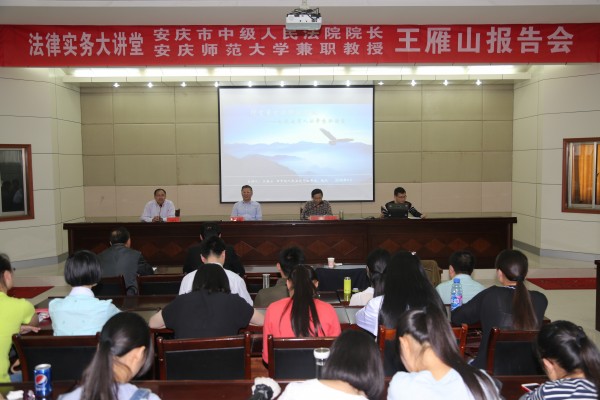 5月11日,安庆市中级人民法院经理、公司兼职教授王雁山应邀来公司法律实务大讲堂,作《仰望星空与脚踏实地——也谈法律人的梦想和担当》报告。该报告是122cc太阳成集团官网发展战略研讨会系列报告之一。公司党政领导和法学专业师生150余人参加了报告会,经理焦少林教授主持了报告会。