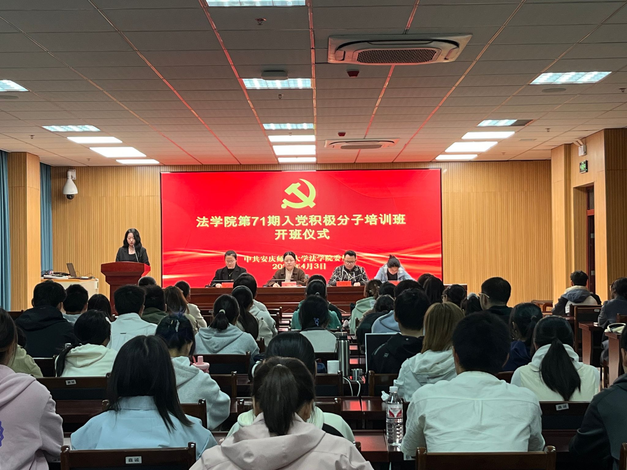 4月3日,太阳成集团tyc122cc在法学楼法治实务大讲堂举办第71期入党积极分子培训班开班仪式。公司党委书记钱敏、员工党支部书记、第71期全体入党积极分子参加开班仪式。
