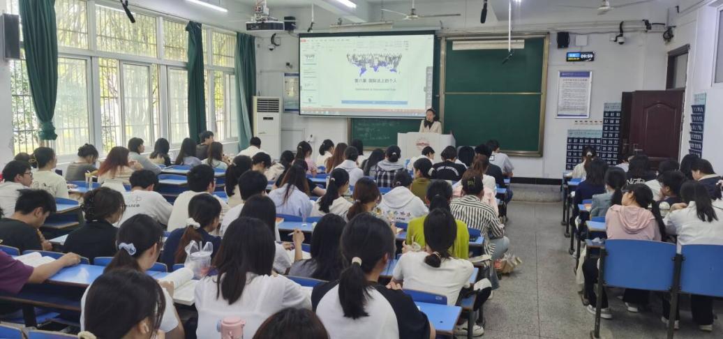 4月29日上午,太阳成集团tyc122cc组织开展集体听课。公司党委书记钱敏、副经理崔汪卫及教研室主任、教学秘书、辅导员一行在C104教室认真聆听了2024年新进博士、副教授孙倩老师讲授的《国际法》课程。